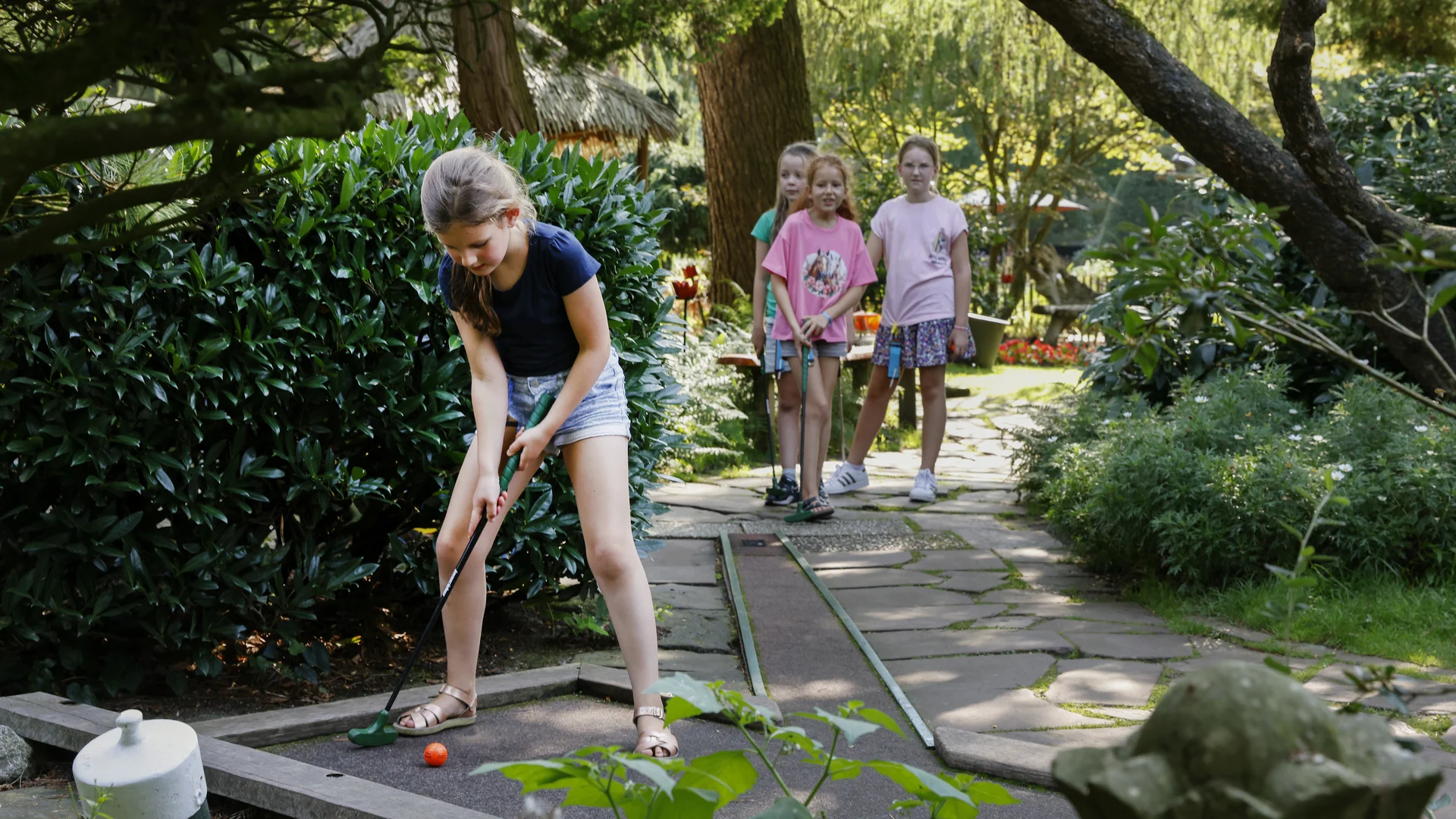 Verscholen in de oude bossen van de Lage Vuursche liggen in een vorstelijke, van historie doortrokken omgeving de Midgetgolftuinen Lage Vuursche. De prachtige, karaktervolle en zorgvuldig onderhouden tuinen tellen maar liefst 3 midgetgolfbanen met elk 18 holes, waarin het buitengewoon aangenaam toeven is. Dit unieke midgetgolf complex is ideaal voor een heerlijk dagje uit. Tevens is de midgetgolfbaan in de Lage Vuursche bijzonder geschikt voor een bedrijfsuitje of kinderfeestje van formaat.